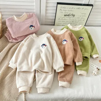 Otoño Invierno estilo coreano conjunto de pijamas de lana de doble cara nueva ropa de abrigo grueso para niños y niñas al por mayor